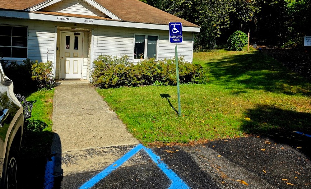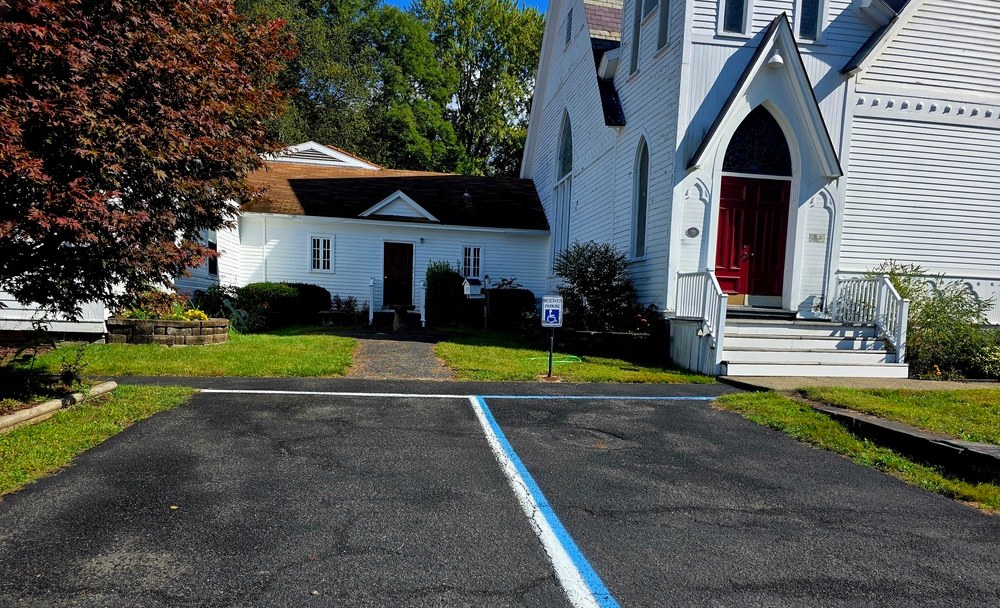 The parking lot is directly adjacent to the Church.